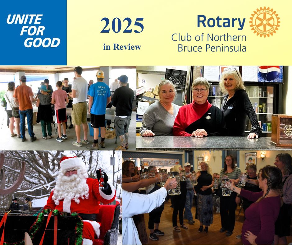 Local Rotarians will continue to support and serve the community of Northern Bruce Peninsula through a wide range of ongoing projects and activities, always striving to live up to the Rotary motto of ‘Service Above Self’. The Rotary International theme for the 2025-26 Rotary year - Unite for Good - calls on all Rotarians to be a force for unity in a divided world. We are very thankful and appreciative of all the support received from the community of Northern Bruce – our ‘Friends of Rotary’ who volunteer their time to Rotary events and projects, our generous individual and business sponsors (contributing towards our Pancake Breakfasts, our Club website, and annual events such as Oktoberfest and the Lion’s Head Santa Claus Parade), and to everyone who comes out to Rotary events, participates and financially supports Rotary projects and initiatives ... helping our small service club achieve our goals!