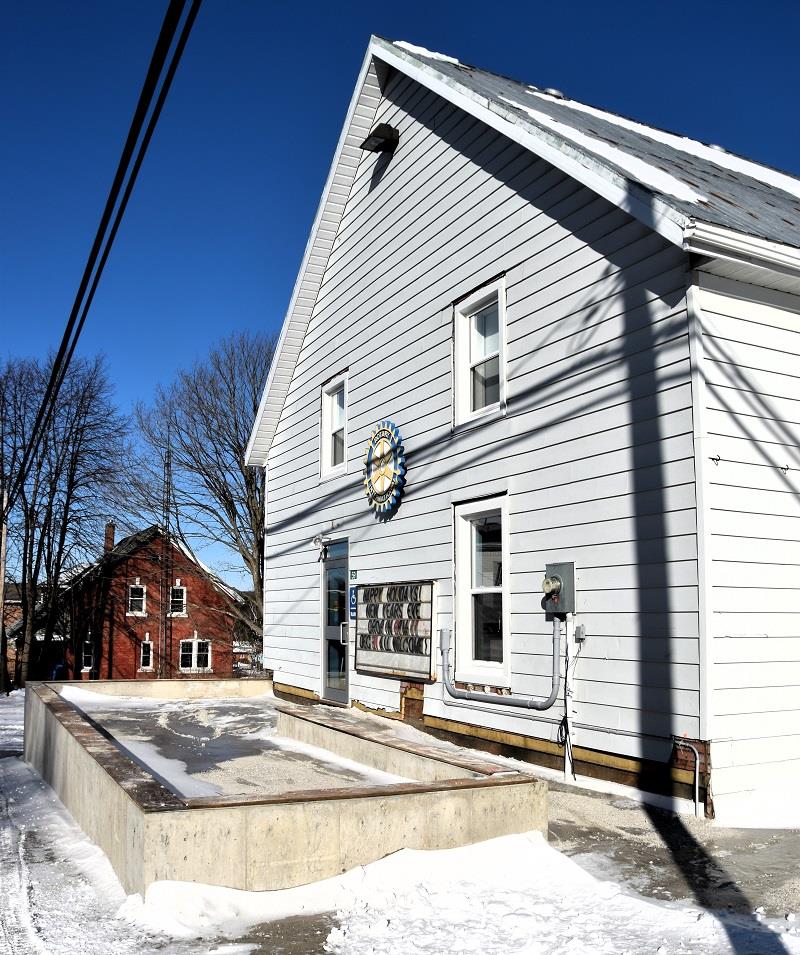 [Photo: Rotary Hall, Main Street, Lion’s Head, showing the newly constructed concrete patio along the front elevation. A fence on the perimeter wall of the patio will also be built, and the patio will provide street-side seating for Rotary events in the coming warmer months! Our Rotary Hall - formerly known as Eastnor Township Hall - has been an impressive edifice here on Main Street in the Village of Lion’s Head since 1898!]