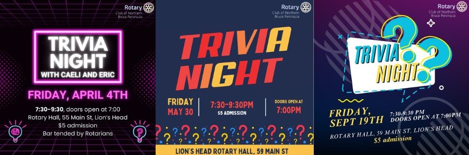 Rotarians tended 26 different Bars in 2025, for a wide range of events both at Rotary Hall and Lion’s Head Arena, as well as other venues such as the Tobermory Community Centre. These events included four Trivia Nights held at Rotary Hall, four Harbourside Inside musical events at the Hall, three Curling Bonspiels held at Lion’s Head Arena, as well as many specialty events such as Oktoberfest at Rotary Hall, the SWANS annual Fashion Show and Lion’s Head Hospital Auxiliary Fish Fry at Lion’s Head Arena, as well as the Municipality of Northern Bruce Peninsula Volunteer Appreciation Day at Rotary Hall. There were also bars held for many other public community and private events including ‘Celebrations of Life’ for local residents who passed away in 2025. Most Club Rotarians are formally certified under the SmartServe program of the Alcohol and Gaming Commission of Ontario (ACGO), to responsibly and safely serve alcohol to the public at Rotary-hosted and sponsored events.