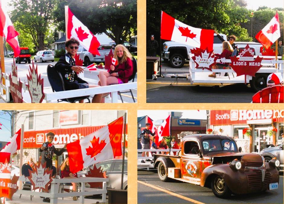 Your local Rotary Club entered a float in the Lion’s Head 2025 Canada Day Parade held Saturday evening, June 28th, which began at Bruce Peninsula District School and following the route down Helen Street, across Scott Street, and back up Main Street, before returning to the School on Moore Street. Thanks our Rotary exchange student Matthew and BPDS student Stephy for participating in the Parade and riding on the Rotary float, and thanks as well to Rotarian Jeff Labonte for towing our float with his 1947 Dodge pickup truck ‘Moonshine’!