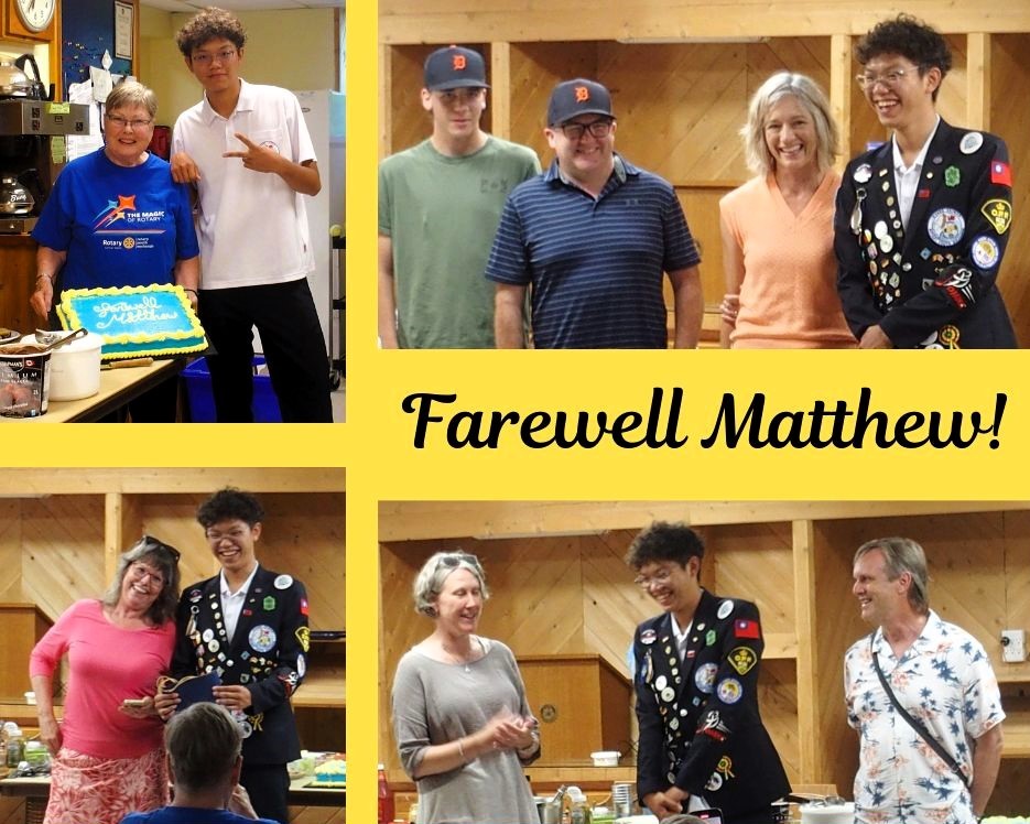 Rotary Bids Farewell to Exchange Student Matthew Returning Home to Taiwan